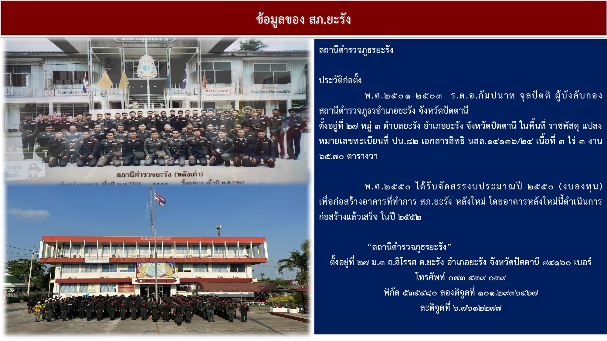 • ประวัติความเป็นมาของสถานีตำรวจภูธรยะรัง
