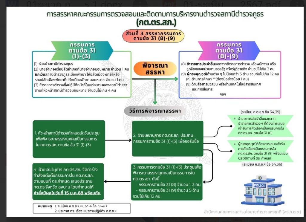 ที่มา : คู่มือการดำเนินการตามระเบียบ ก.ต.ช. ว่าด้วยคณะกรรมการตรวจสอบและติดตามการบริหารงานตำรวจ พ.ศ. 2567
